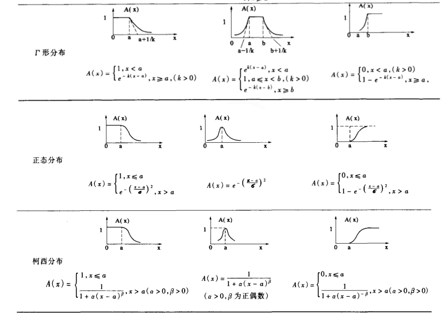 (3)指派法(根据问题的性质直接套用某些分布作为隶属函数,主观性较强)