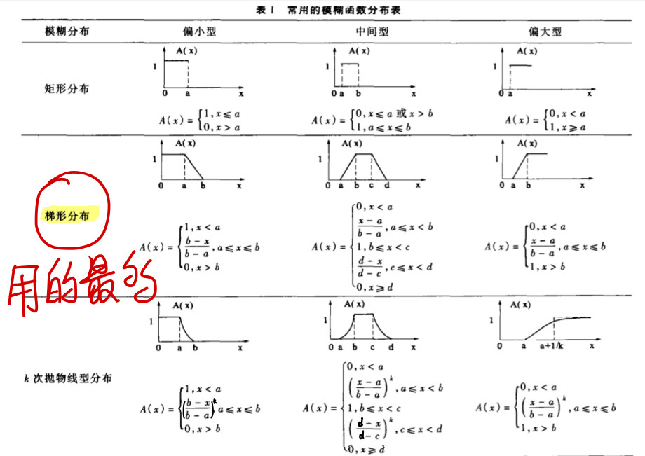 一般在确定隶属函数时,偏小型图像递减,中间型图像先递增后递减,偏大型图像递增。