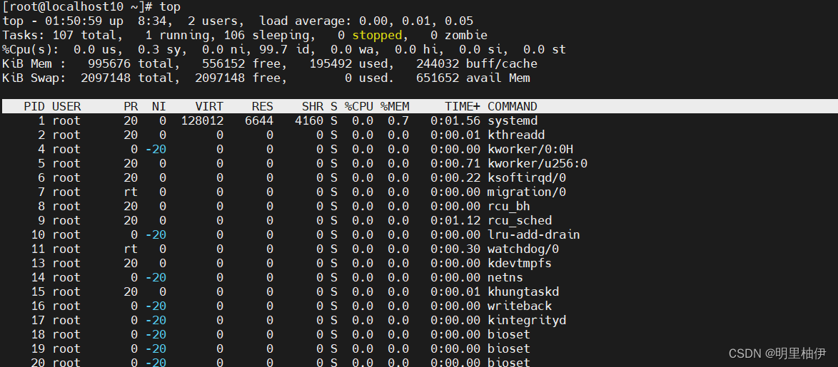 D = uninterruptible sleep D:不可中断的深度睡眠状态,处于这种状态的进程不能响应异步信号;不可中断 的等待状态最典型的例子就是进程等待磁盘I/O操作 R = running R:进程处于运行态或就绪状态,只有在该状态的进程才可能在CPU上运行。而同 一时刻可能有多个进程处于可执行状态; S = sleeping S:可中断的睡眠状态,处于这个状态的进程因为等待某种事件的发生而被挂 起。;这类进程处于阻塞状态,一旦达到某种条件,就会变为运行状态。同时该状态 的进程也会由于接收到信号而被提前唤醒进入到运行状态。 T = stopped by job control signal T:暂停状态或跟踪状态;进 向进程发送一个SIGSTOP信号,它就会因响应该信号而进入TASK_STOPPED状态(除非该进程本身处于ASK_UNINTERRUPTIBLE状态而不响应信号)