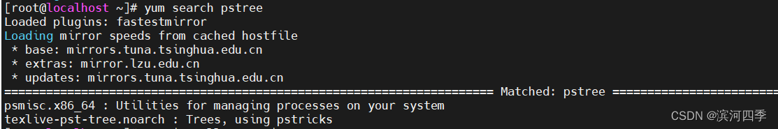 例如安装pstree命令,直接使用yum install -y pstree是无法安装的,要先使用yum search pstree来查找他的完整安装名称,再进行安装。