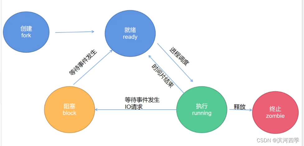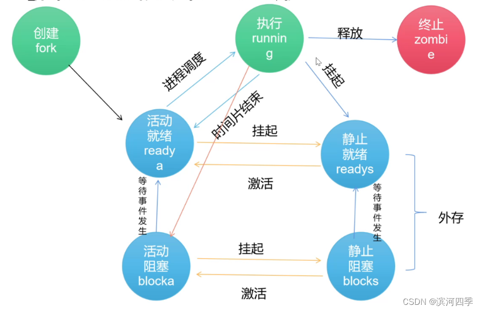 Linux是一个多用户多任务的操作系统,可以同时运行多个用户的多个程序,就必 然会产生多进程,而每个进程会有不同的状态。Linux的进程有以下6种状态: