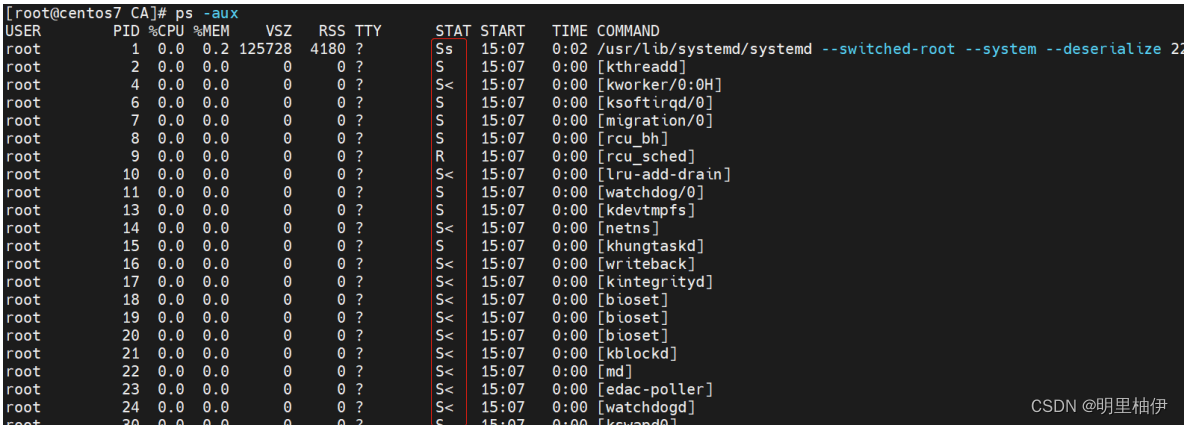 Linux系统使用ps -aux命令时可观察到进程的当前状态