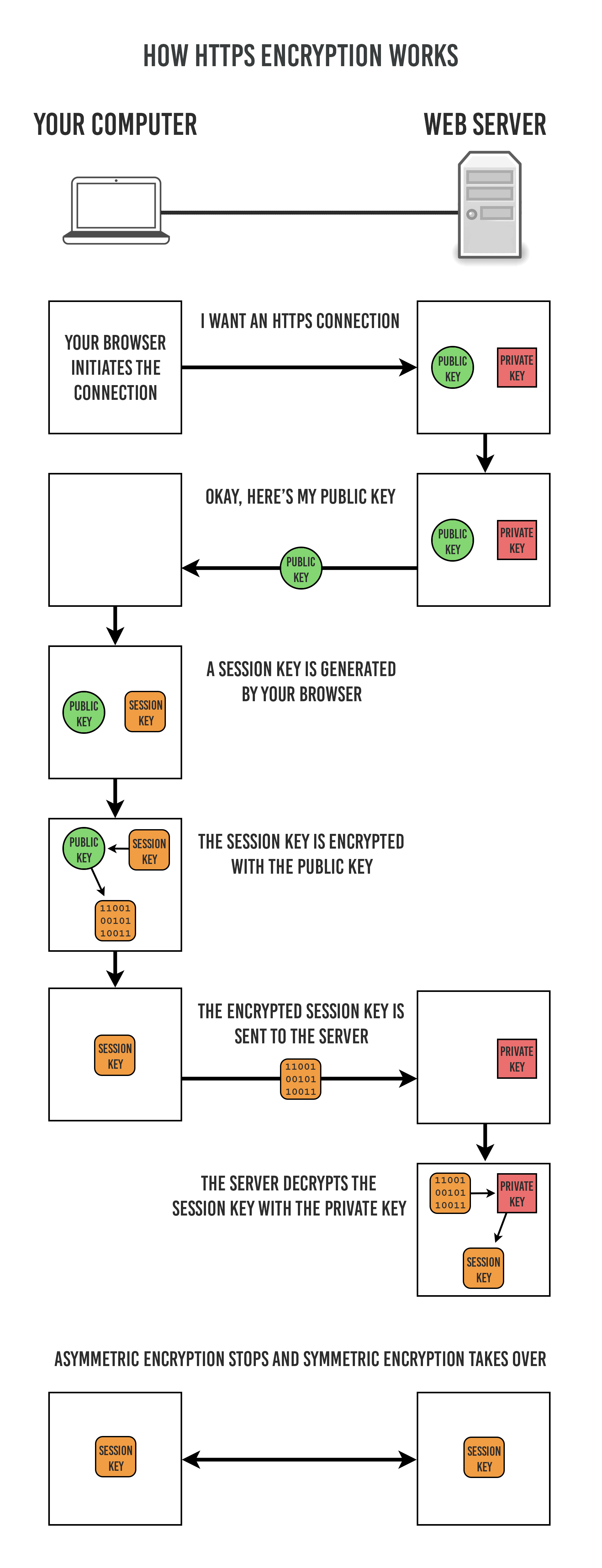 - 获取到 Secret Key 后,再使用对称密钥加密方式进行通信,从而保证效率。(下图中的 Session Key 就是 Secret Key)