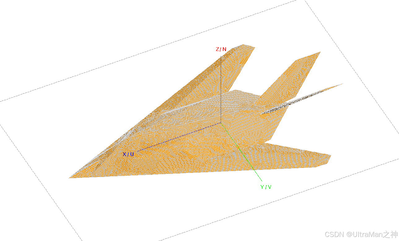 下文通过FEKO软件对某飞机目标进行回波仿真,利用步进频信号进行目标ISAR成像,并进行目标二维尺寸估计。FEKO模型如下图所示。