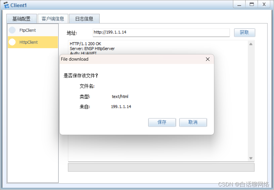 7.在R1上配置NAT Server,实现外网用户能用http://199.1.1.14访问Server1上的www服务。将在client1上成功访问 Server1上www服务的界面截图。
