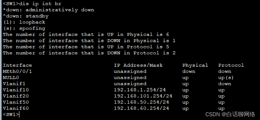1、SW1的三层vlan配置