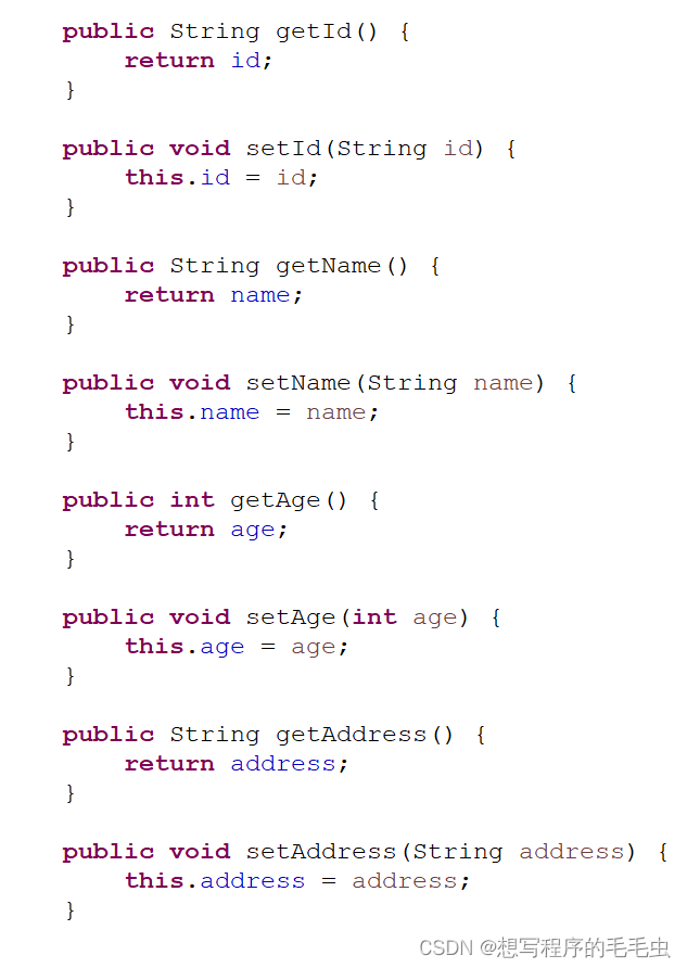 给每一个元素编写 set 、get 代码,用于读取跟修改;