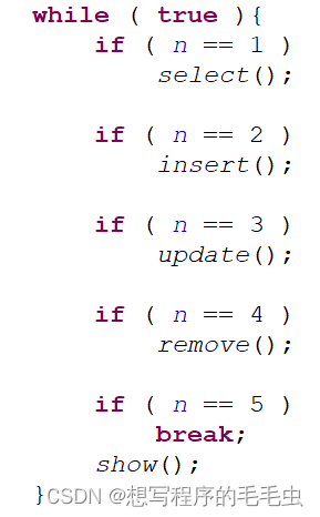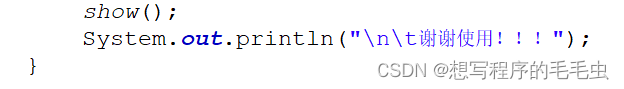 对 n 取值进行判断,使各取值调用各自所对应的方法,完毕后再次进入 show 方法;