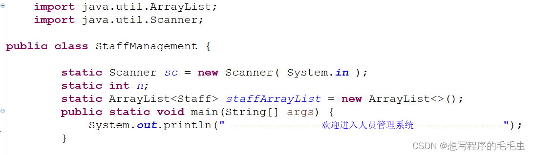 System.out.println(" -------------欢迎进入人员管理系统-------------");