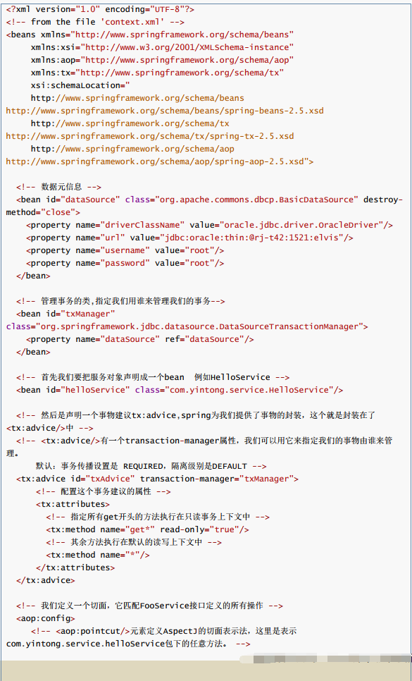 52.Spring怎么配置事务(具体说出一些关键的xml元素)。