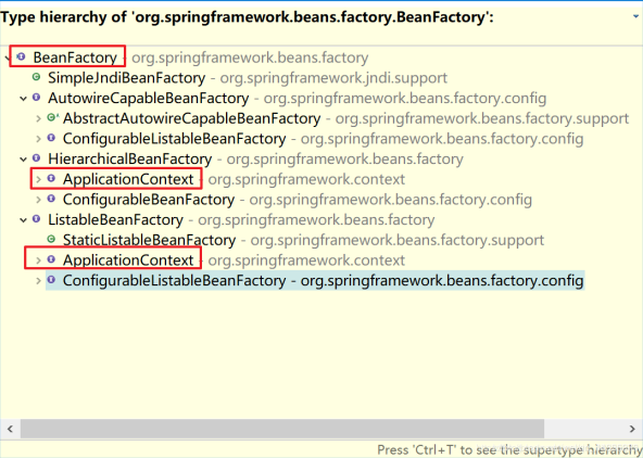 在类图关系上BeanFactory是ApplicationContext接口的父接口