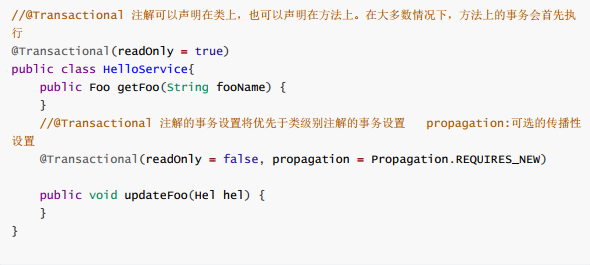 @Transactional:直接在Java源代码中声明事务的做法让事务声明和将受其影响的代码距离更近了,而且一般来说不会有不恰当的耦合的风险,因为,使用事务性的代码几乎总是被部署在事务环境中。