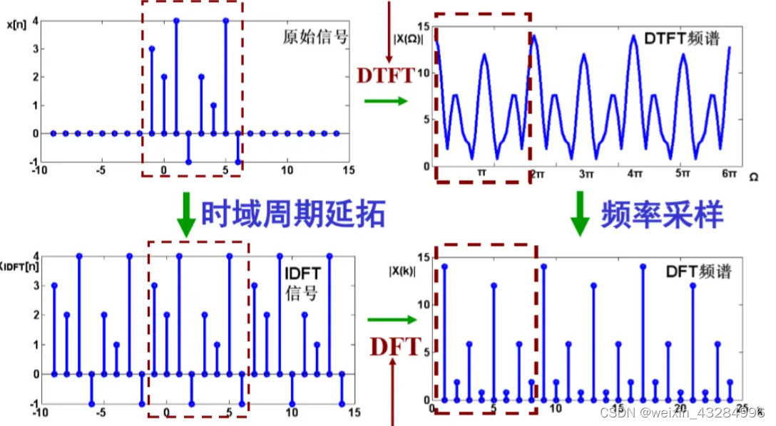 离散、非周期 、有限长--> 周期、离散