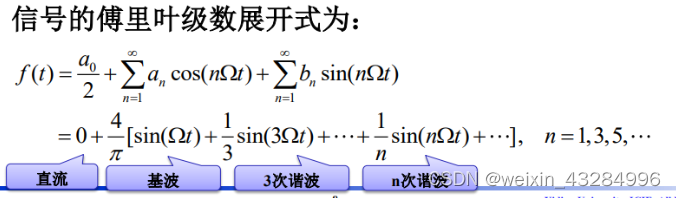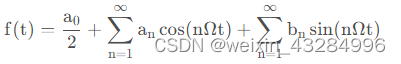 设周期函数 f(t) ,周期为 T,角频率(基波频率),当他满足狄里赫利(Dirichlet)条件时,可以展开为三角形式的傅里叶级数。