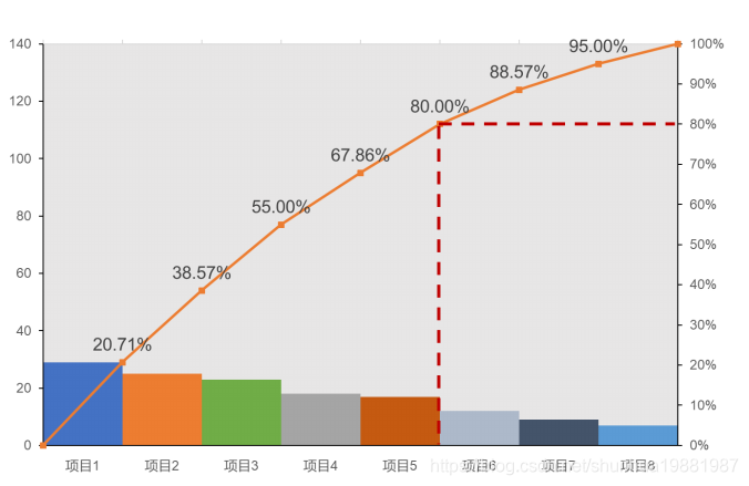 Echart 制作柏拉图——带二八法则线