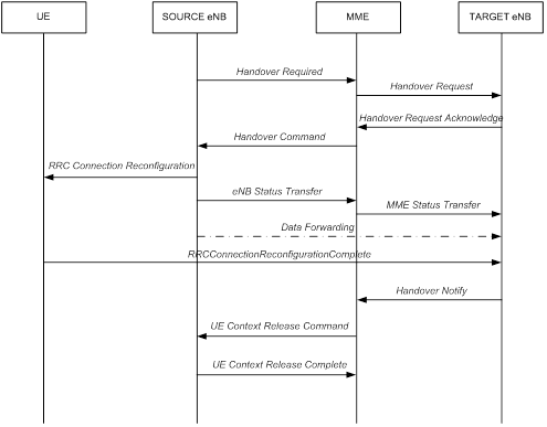 8、目标eNB收到UE发送的RRCConnectionReconfigurationComplete消息,表明切换成功。