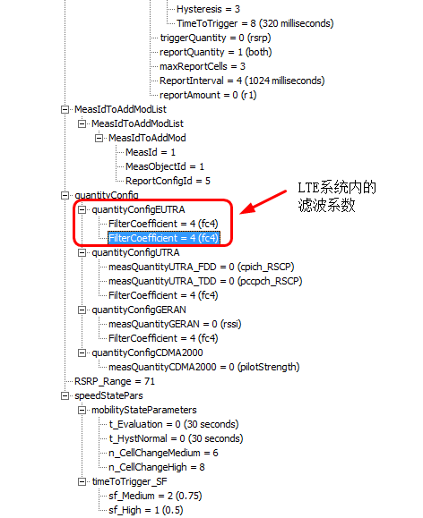 FilterCoefficient测量时的RSRP层3滤波系数,配置范围0~14,对应的取值enum (0, 1, 2, 3, 4, 5, 6, 7, 8, 9, 11, 13, 15, 17, 19)。