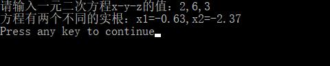 printf("方程有两个不同的实根:x1=%.2lf,x2=%.2lf\n",x1,x2);
