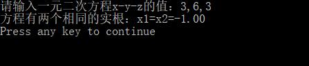 printf("方程有两个相同的实根:x1=x2=%.2lf\n",x1);