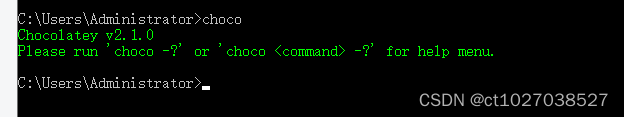 3.输入命令choco,显示chocolatey版本号,说明安装成功