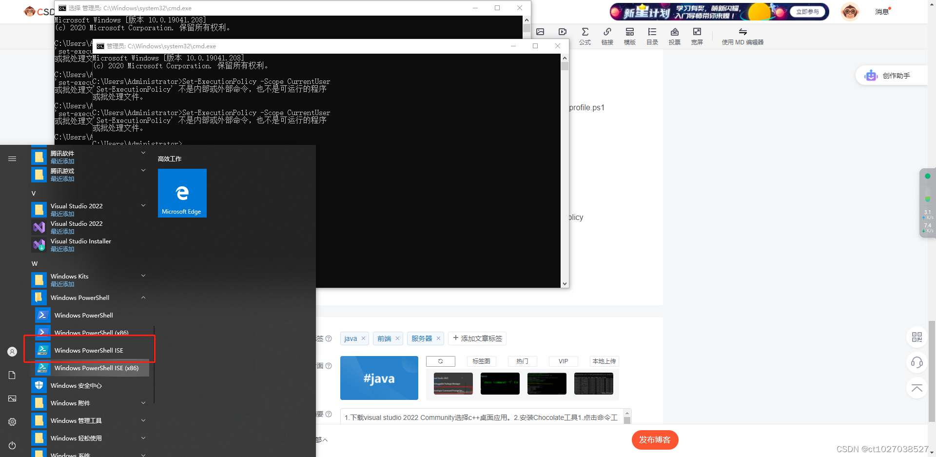 如果遇到set-executionpolicy不是内部或者外部指令,需要注册组件。