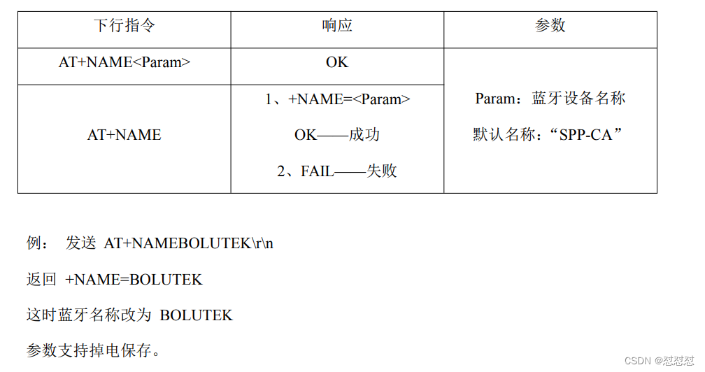 (3)更改蓝牙名称指令