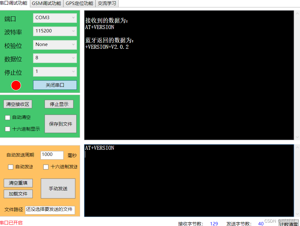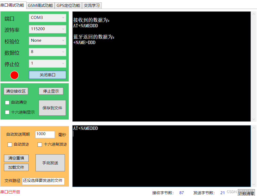 实验目的:通过串口助手发送指令,接收蓝牙返回的指令并打印在串口助手,实现对蓝牙相关数据