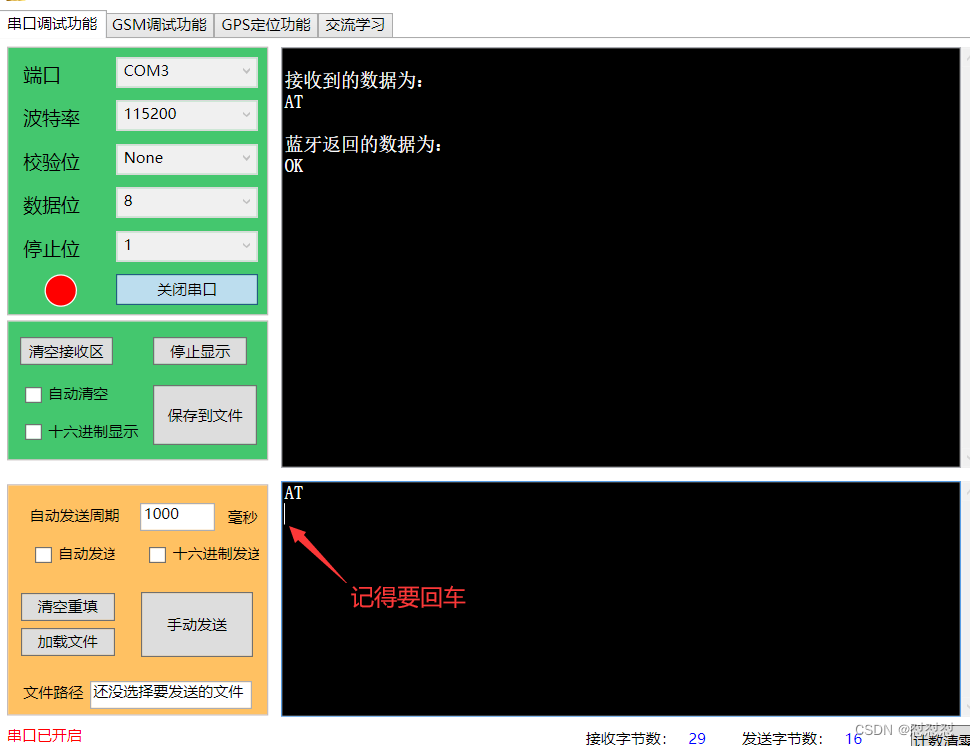 记得在发送指令时需要回车,不仅仅是接收数据时的约定,更是蓝牙接收数据的约定。