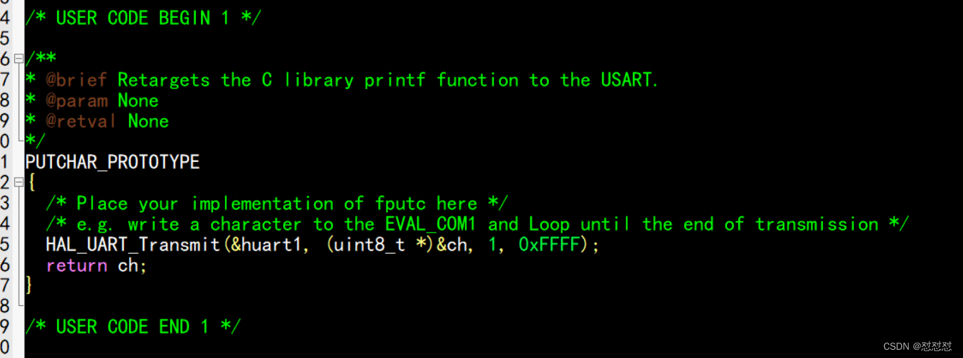在 /* USER CODE BEGIN 1 */ 和 /* USER CODE END 1 */ 之间加入以下代码: