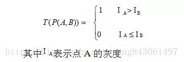 ②设定一个合适的阙值t :当2个点的灰度值之差的绝对值大于t时,我们认为这2个点不相同。