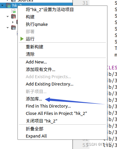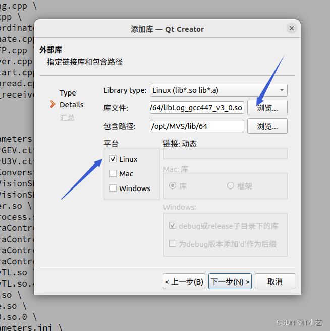 在项目中添加库,选择外部库,然后选择库文件所在的路径下,选择opt/mvs/lib/64下的所有的 .so文件,一个一个添加