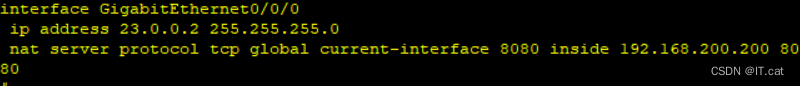 [R1-Gigabi tEtherneto/0/1]nat server protocol tcp _global current-interface 000 inside 10.1.1.1###在连接公网的接口,上将私服务器地址和外网接口做一对NAT映射绑定