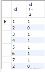 select id, id != 2 from exam_result;