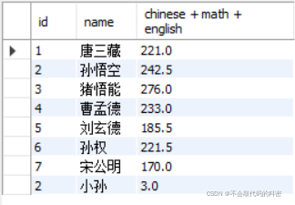 (1,'唐三藏', 67, 98, 56),