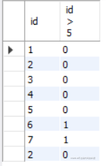 select id, id > 5 from exam_result;