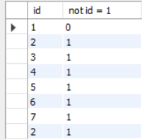 select id, not id = 1 from exam_result;