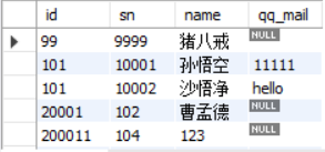 INSERT INTO student (sn, id, name, qq_mail) VALUES