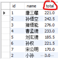 SELECT id, name, chinese + math + english AS total from exam_result;