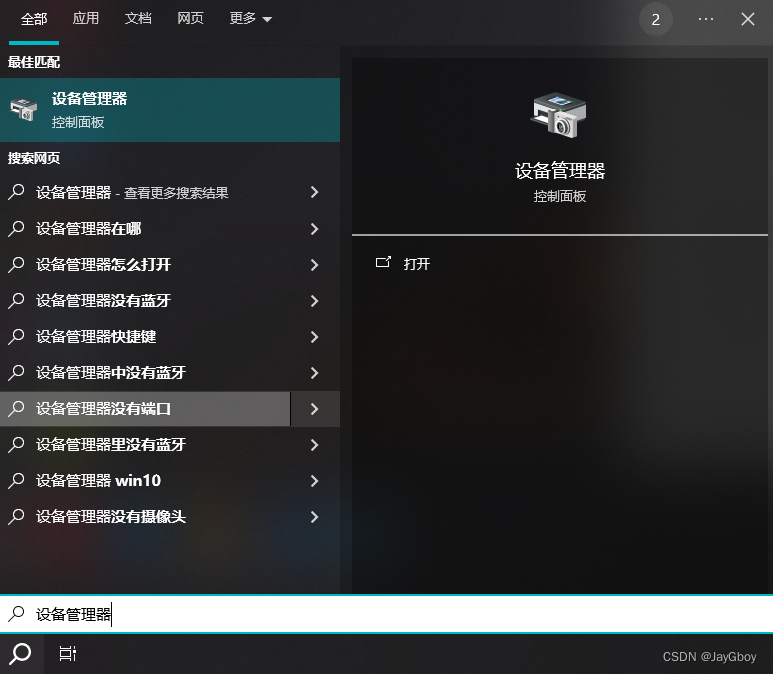 1.在任务栏中的搜索里搜索‘设备管理器’,点击打开设备管理器。