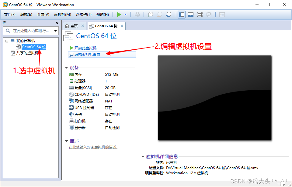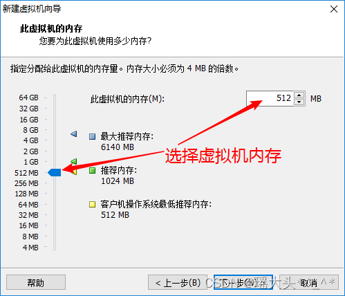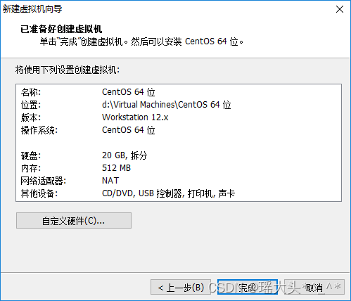 注意:这里虚拟机内存选择512M,如>=1G的默认安装CentOS桌面版,低于<1G的默认安装CentOS 服务器版