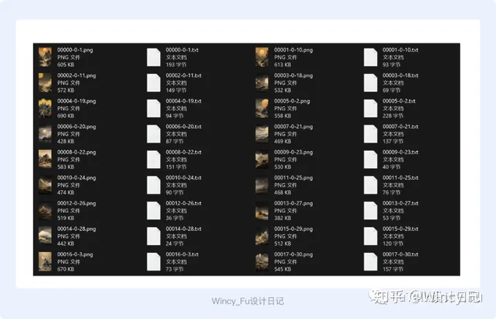 打开刚才建的2文件夹,就可以看到图片和自动生成的标签了。txt文本中的就是SD自动打好的标签。