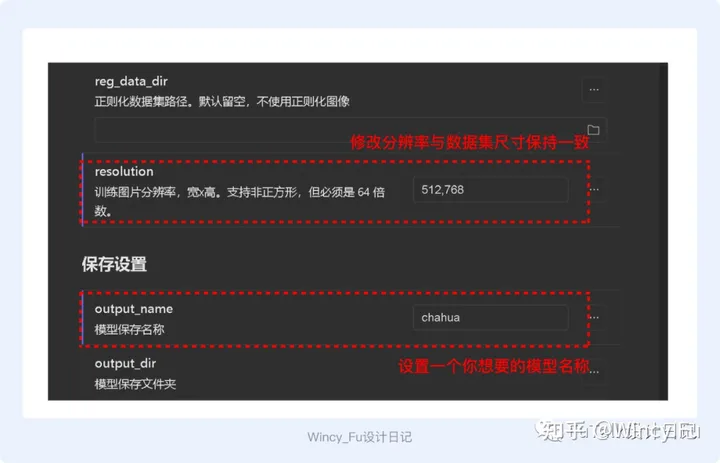 修改分辨率(之前数据集的尺寸是多少,这里就用多少)保存设置:保存模型的名称修改成你想要的名称