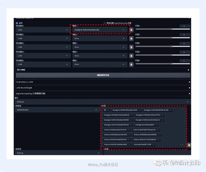 我是用xyz序列图进行反馈:在使用之前需要先给Stable-Diffusion安装一个插件AdditionalNetworks,这个插件可以帮助我们测试多个LoRA不同权重的效果。安装成功后,会有图片所示部分。