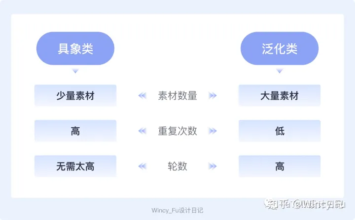 我只简单的划分为两类:具象类和泛化类,具象类如:一个物体、一种姿势、一种服装、一个人物、某个特定元素等都可以划归为具象类。泛化类如:某种场景、某种艺术风格、色彩风格等。