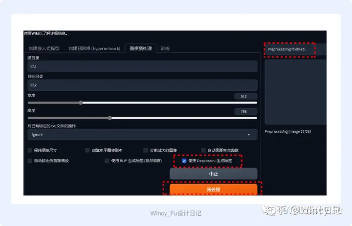 当SD界面右侧出现Preprocessing finished,就表示SD已经帮你自动打标好了。
