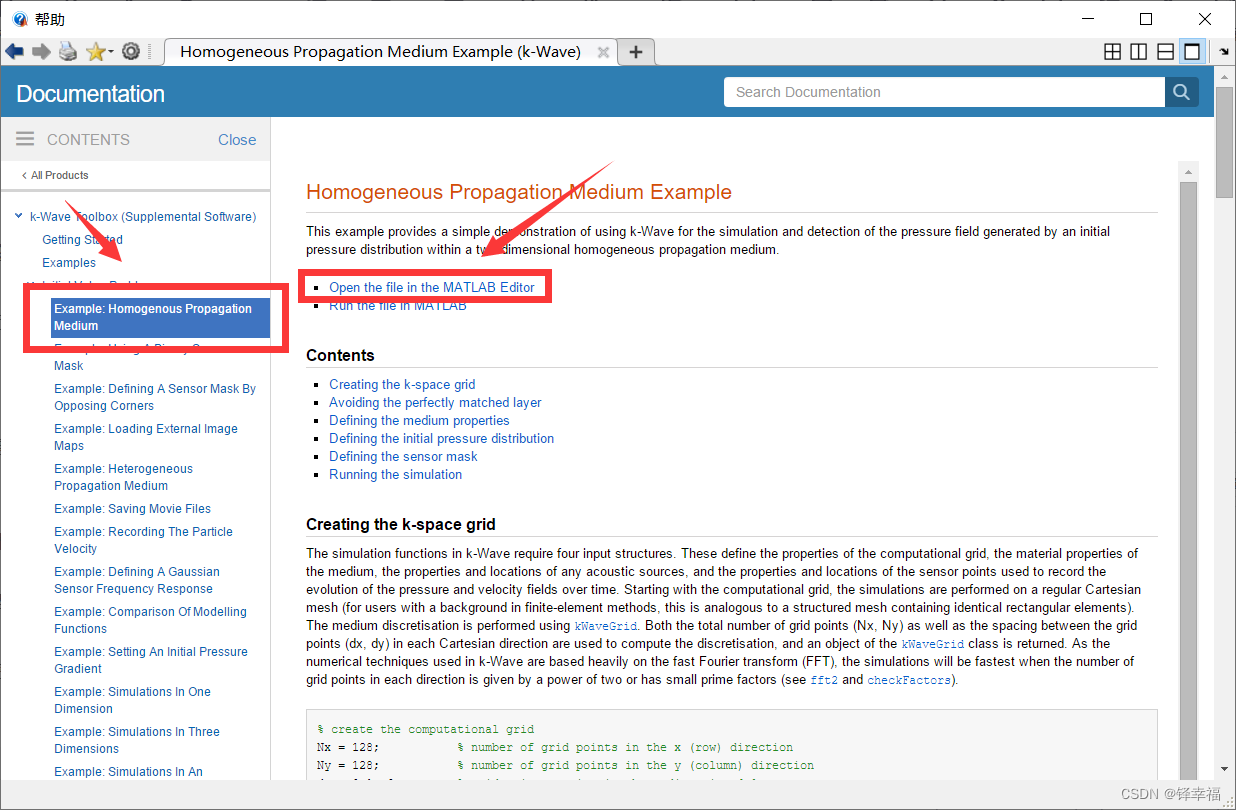 注:官方文档中建议k-Wave新手优先完成初始值问题实例【Initial Value Problems】,再去学习特定领域的示例