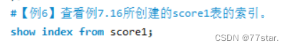 #【例6】查看例7.16所创建的score1表的索引。