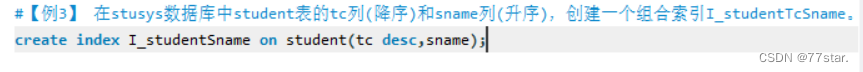 #【例3】 在stusys数据库中student表的tc列(降序)和sname列(升序),创建一个组合索引I_studentTcSname。