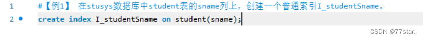 #【例1】 在stusys数据库中student表的sname列上,创建一个普通索引I_studentSname。