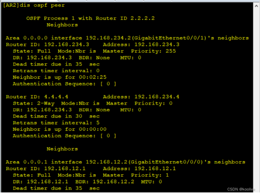 [AR2-LoopBack0]ip address 2.2.2.2 32[AR2]router id 2.2.2.2